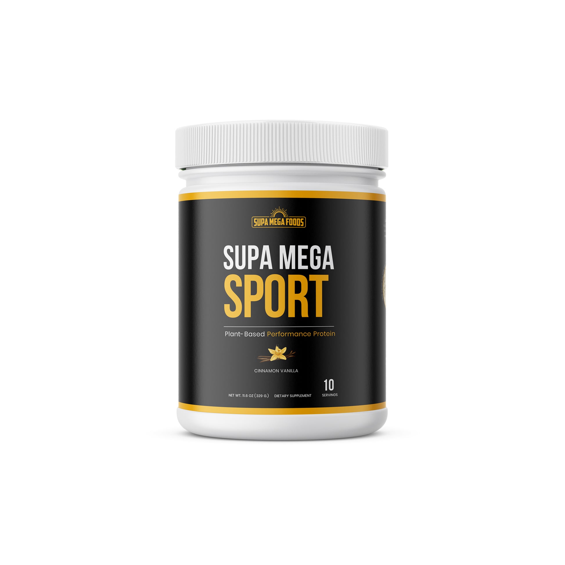 Supa Mega Sport is a comprehensive formula of plant-based protein infused with ashwagandha, moringa, and green tea to help increase energy, reduce fatigue, stabilize your metabolism while promoting muscle protein synthesis.